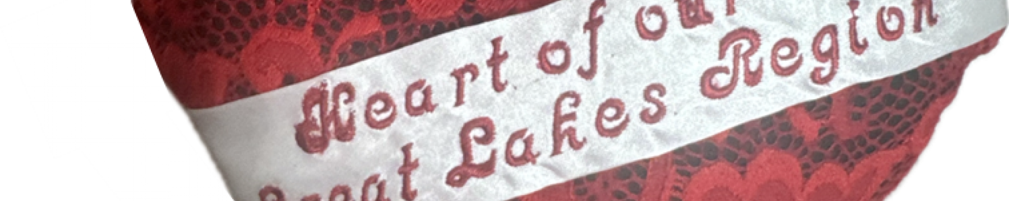We honor and bless the leaders in our Region with a handmade "Heart of the Great Lakes" pillow, made from satin, lace and embroidery. It is an appreciation gift/award commissioned and made just for them. .